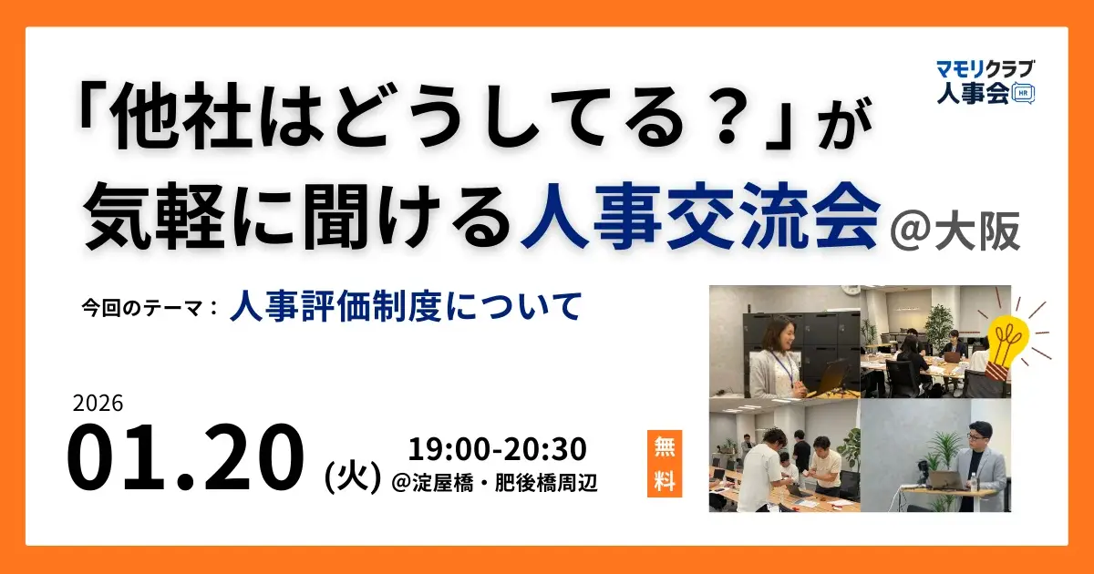 2026年1月20日(火)19:00より、大阪・淀屋橋/肥後橋周辺にて無料イベント「人事・採用の『他社はどうしてる?』が気軽に聞ける交流会」を開催します。今回のテーマは、「人事評価制度について」です。 人事…